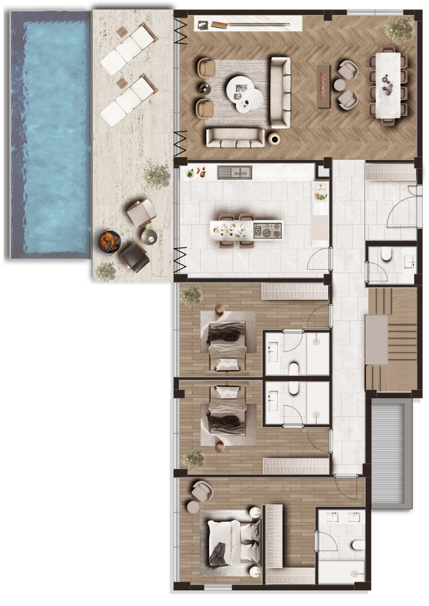 “Alternatif” anlamındaki “alterna” kelimesinden ilham aldığımız Villa Alterna; farklı yaşam seçeneklerini bir arada sunana özgün yapısıyla, modern hayatın değişken ihtiyaçlarına uyum sağlıyor.